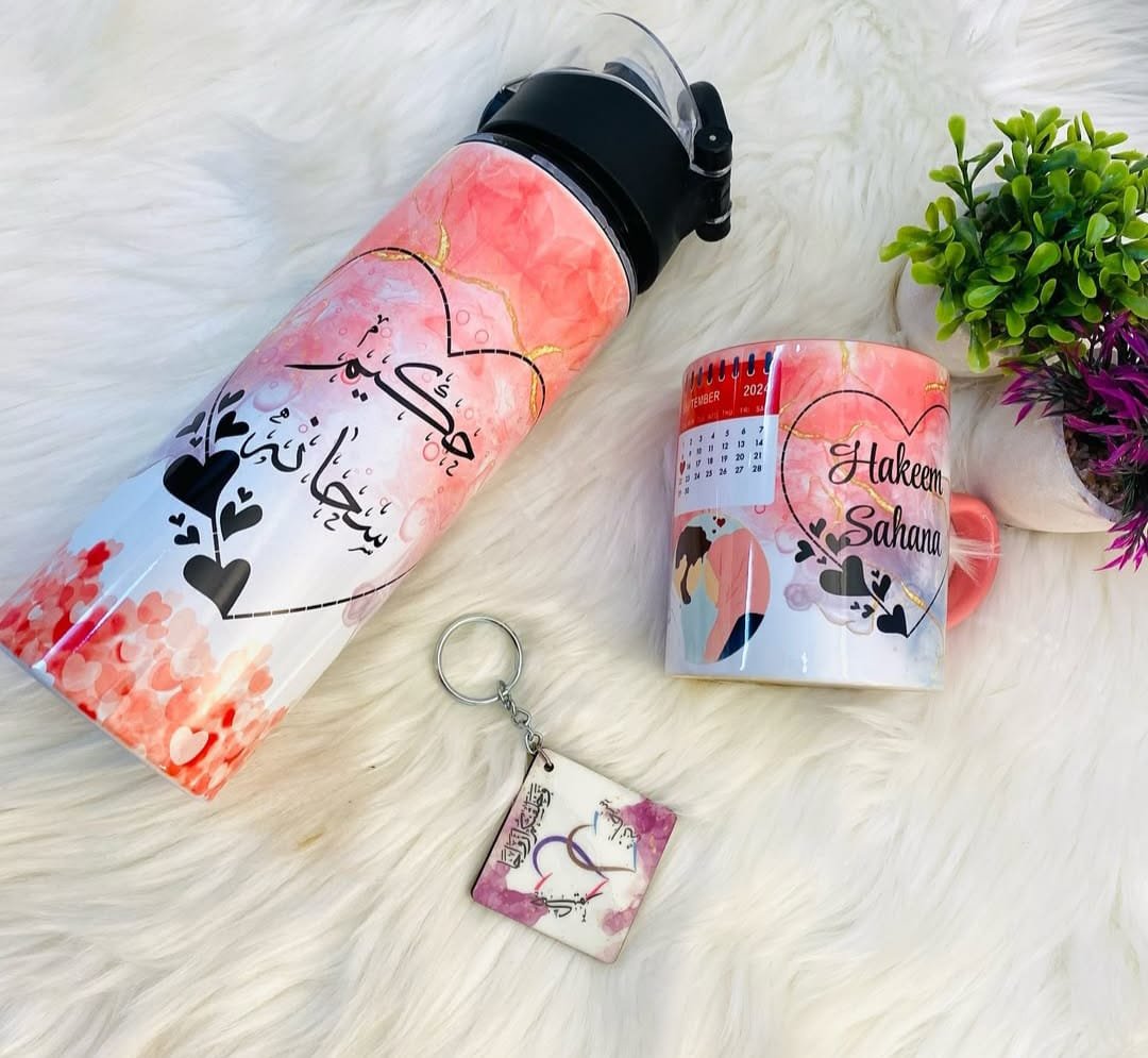 Straw Bottle, Mug, Keychain comboCouple